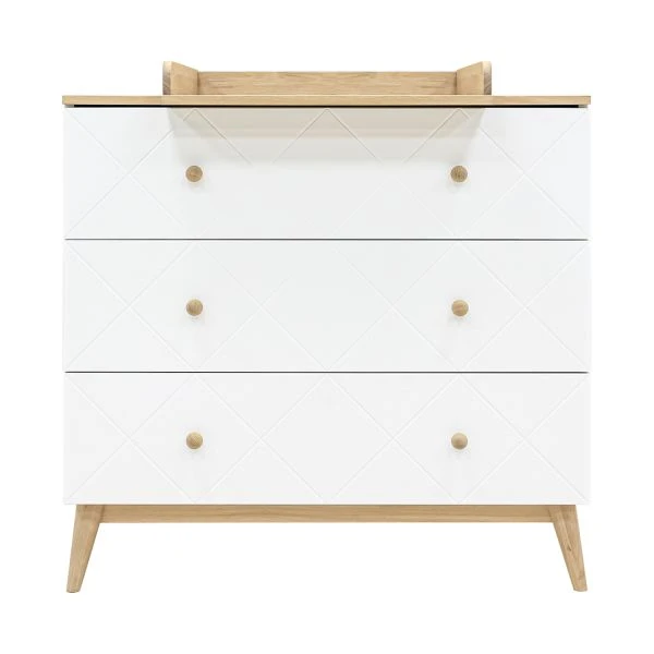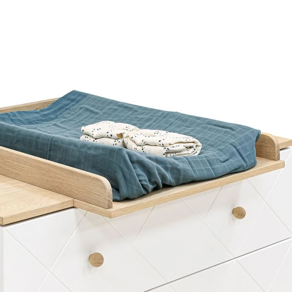 Het Bopita Paris Bladvergroter Wit / Eiken kenmerkt zich door de zichtbare diagonale groeven en eiken accenten. Door de neutrale kleuren en vormen is deze bladvergroter geschikt voor zowel jongens als meiden. Door de stijlvolle bladvergroter ligt jouw kindje altijd recht voor je. Dit maakt het verschonen een stuk gemakkelijker! Verder is de bladvergroter speciaal ontworpen voor de Bopita Paris Commode en sluit daarom perfect aan. Daarnaast is de bladvergroter eenvoudig zonder krassen te verwijderen van je commode. Gemaakt van hoogwaardig MDF en eiken materiaal.