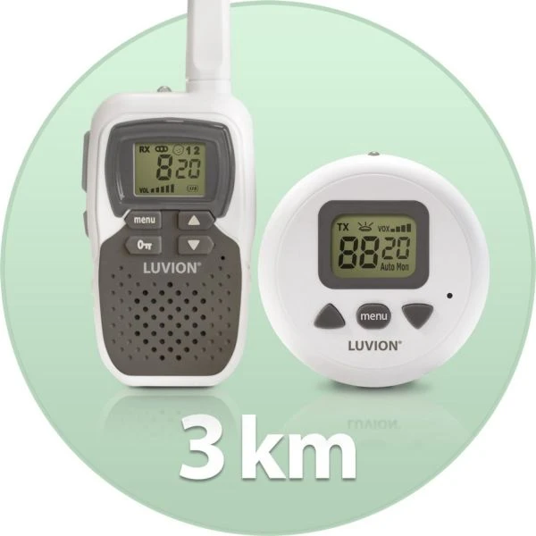 De naam van de Luvion Icon Long Range set 58 Babyfoon zegt het al; deze babyfoon heeft een uitzonderlijk groot bereik! Onder de juiste omstandigheden heeft de babyfoon buitenshuis tot wel 3000 meter bereik. Hierdoor kun je de hond uitlaten terwijl je kindje in bed ligt, maar ook op vakantie is de babyfoon erg ideaal om te gebruiken. De babyfoon maakt gebruik van een PMR technologie, dit is dezelfde techniek die gebruikt wordt bij portofoons. Hierdoor is de verbinding erg stabiel en het bereik groot. De ouderunit heeft een accuduur van ongeveer 10 uur, en de baby unit kan op het stopcontact worden aangesloten. Daarnaast is deze babyfoon tot wel 3 baby units uit te breiden, zodat je meerdere kindjes tegelijkertijd in de gaten kunt houden. Door de VOX-functie springt de babyfoon automatisch aan wanneer je kindje begint te huilen. Verder is de babyfoon voorzien van een nachtlampje en een zaklampfunctie.