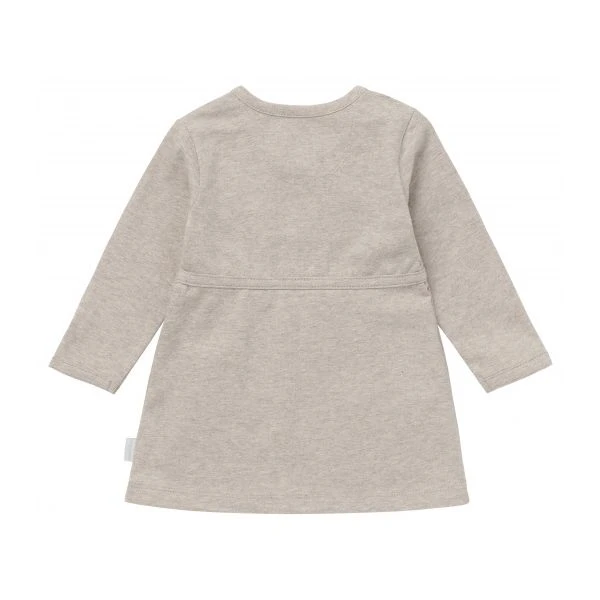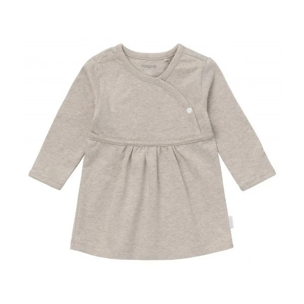 Dit leuke Noppies Nevada Jurkje Taupe Melange Mt. 50 heeft een mooie overslag met een drukknoopje op de voorkant.