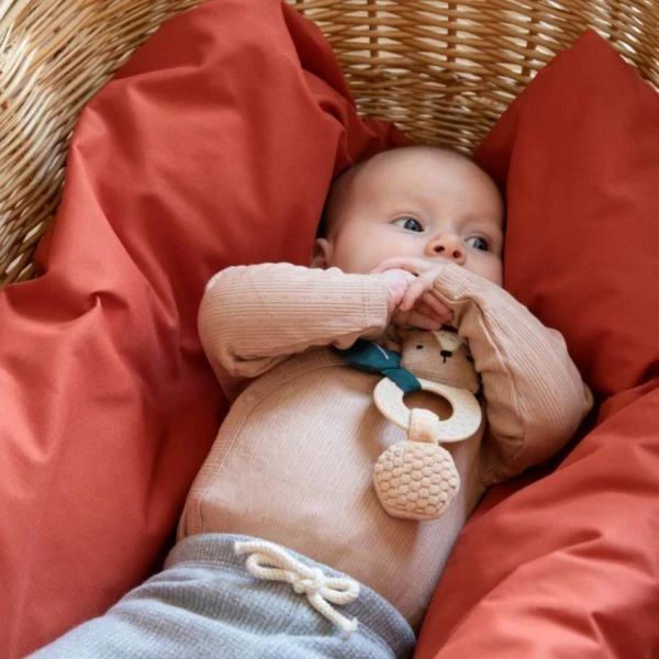 De Sebra Milo The Bear Activiteitenrammelaar is een rammelaar met een vrolijke beer waarmee je kindje heerlijk kan ontdekken en spelen. Het formaat van de rammelaar past goed in het handje van iedere baby. Daarnaast is de rammelaar voorzien van verschillende figuurtjes waaronder een handige bijtring, een blaadje en een deel van een bijenkorf.