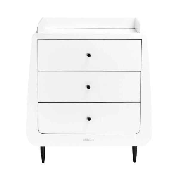 De SnuzKot Skandi Commode Mono valt direct op door de Scandinavische uitstraling. De commode heeft opstaande randen zodat je kindje er veilig op kan liggen. In de 3 ruime lades kan je alle verzorgingsspulletjes en schone kleding van je kindje kwijt, zo heb je altijd alles bij de hand. De commode kan worden gebruikt vanaf de geboorte van je kindje tot en met 12 maanden of 11 kg. Wanneer je de commode niet meer gebruikt om je kindje op te verschonen kan je de opstaande randen verwijderen om de kast als dressoir te gebruiken. Bovendien kan de commode perfect worden gecombineerd met het SnuzKot Skandi Babybed waarmee je een mooi geheel creëert in de kamer. Verder is de kast gemaakt van natuurlijk beukenhout zonder gebruik van MDF of fineer.